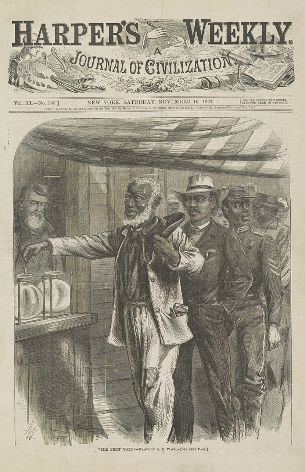 Even before Lincoln’s death, tension was emerging between the Radical Republicans in Congress and the President, but it would reach a new height during the Johnson administration. One of the most prominent points of tension was the conceptualizing of the former Confederate states: Radicals, led in the House of Representatives by Pennsylvania’s Thaddeus Stevens, saw the Southern states not as states of the Union but “conquered provinces subject to the will of Congress” so when Congress created the Joint Committee on Reconstruction, that committee “set harsh, punitive terms” for readmitting states to the Union.[ii] As much as this emboldened freedmen and their allies to take a stand and fight, it equally roused white Southerners including the former Confederate Vice President Alexander Stephens who, before the Joint Committee on Reconstruction, protested “making the acceptance of Negro suffrage or the Fourteenth Amendment a condition of restoration to the Union.”[iii] For Radicals, the Fourteenth Amendment to the Constitution was not only a sea change in policy and a way to help protect freedmen but also a way for the Republican Party to expand its electorate to include those freedmen. And the necessity for the Fourteenth Amendment became clear after the adoption of the Thirteenth Amendment. The Thirteenth Amendment had passed Congress by the end of January 1865, and the states ratified the amendment before the year’s end. That amendment prohibited slavery and involuntary servitude “except as a punishment for crime whereof the party shall have been duly convicted,” but it left numerous questions as to how freedmen would begin their lives in society at large, and for Republicans, it also presented a political issue: with slavery no longer existing, the Three-Fifths rule—the rule that required, for purposes of congressional representation, each slave to be counted as three-fifth of one person—was also no more; each freedman was a whole person. And most freedmen lived in former Confederate states so when those territories were re-admitted back into the Union as states, Southern states would enjoy more political power than ever before and the commensurate influence on policymaking would soon be felt. The interests of the Republican Party and freedmen had thus aligned, and the Fourteenth Amendment was born: it “declared that Negroes were citizens of the United States and also of the states in which they lived; it attempted to secure to Negroes all the rights and privileges of citizenship; and it provided that any state which denied Negroes the right to vote would then have its representation in Congress reduced proportionately to the number of persons so deprived.”[iv]