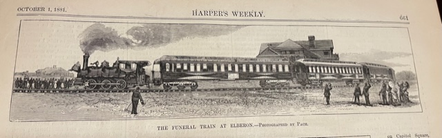 Then came the news: “DEAD! James A. Garfield Passes into the Dark Valley, And the Shadow of Death Hangs Over the Land. Dead—in the Full Ripeness of Life. Dead—At the Summit of All Earthly Greatness. Dead—but as a Christian and Soldier Dieth, With a Record of Imperishable Achievements That Will Live Through All the Coming Ages, And Keep Green the Memory of the Martyred President. Columbia Bows Her Stricken Head in Sorrow, And in this Hour of Her Supreme Grief, Knowing no Division of the North or South, She Decks His Bier With Immortal Laurels, While All Her Sister Nations Mourn With Her, Mingling Their Tears With Those of Our Own People.”[xxii] Only ten minutes before death, Dr. Hamilton had said there “were good grounds for encouragement,” but the President passed that evening at 10:52 P.M.[xxiii] When the President had complained of not feeling well and holding his chest, Dr. Bliss came to tend to him but found that the President was already “unconscious, substantially without pulse, and the action of the heart almost undistinguishable.”[xxiv] He sent for the First Lady, Dr. Agnew, and Dr. Hamilton, and then the President passed; notice was sent to the members of the Cabinet.[xxv] Just moments before the President’s passing, those in the room saw the President “breathing heavily and at increasing intervals” causing some of the servants to sigh and suppress their sobs, “but all the rest were silent.”[xxvi] Then, the “heavy breathing of the President continued for about fifteen minutes, and then ceased. Consciousness did not return. His death was absolutely painless.”[xxvii] The First Lady returned to the room after a half hour “and sat silently upon the bedside, the tears running in floods over her cheeks, but her whole demeanor manifesting her heroic spirit and self-control in this, the supreme hour of her grief.”[xxviii]