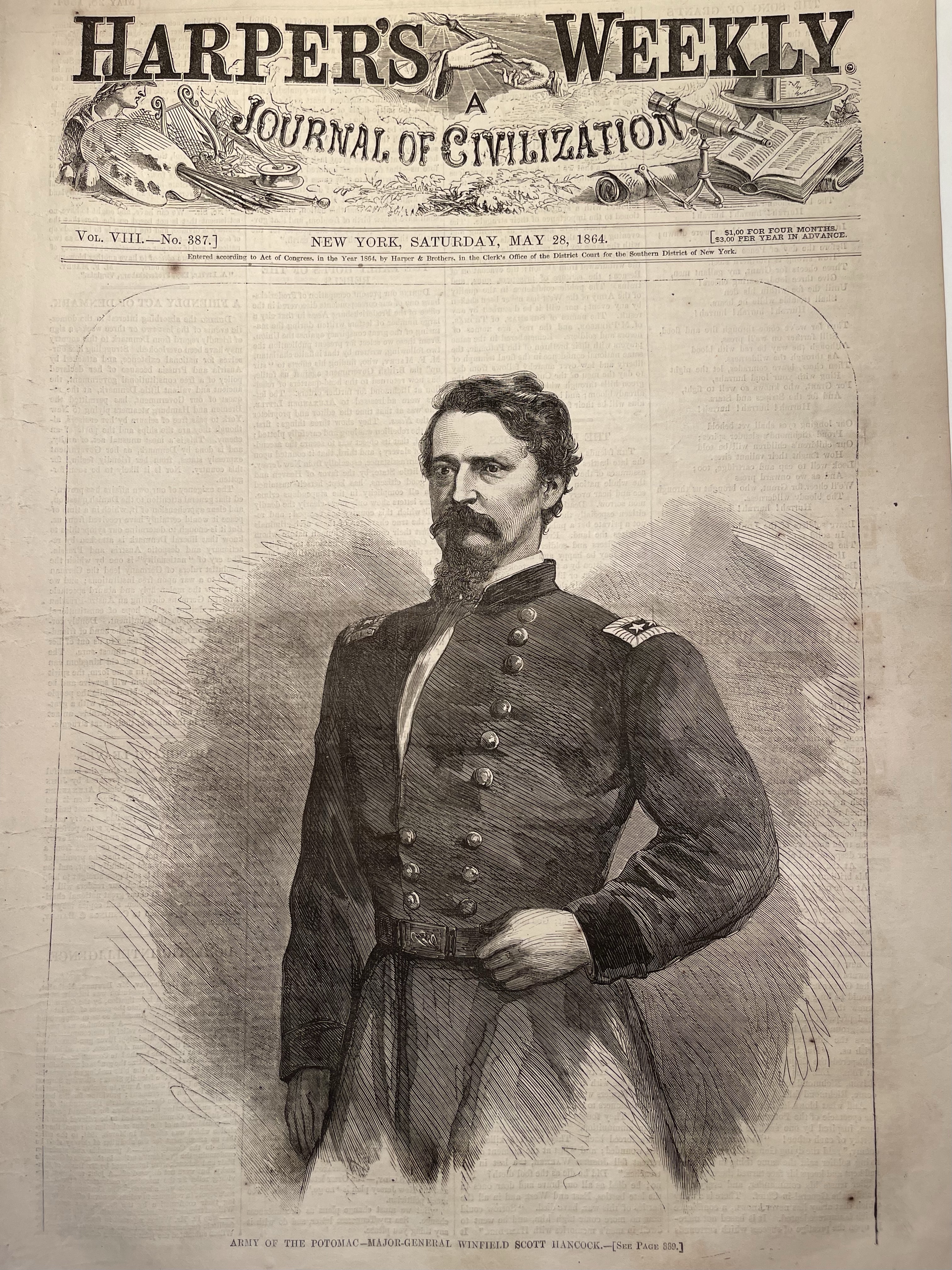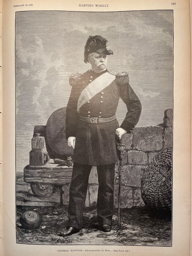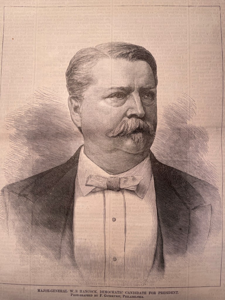 War heroes earn respect through their service. The Civil War brought out more heroes than perhaps any other war in American history. They were men who served their country at its inflection point, and they could be assured that their time on the battlefield could translate to time in public office. General Winfield Scott Hancock was but one example. He was “a patriotic hero, a stainless gentleman, and an honest man.”[i] He became one of the greatest Generals in the war: one that the soldiers, officers, and citizens were glad to have. He got out from under a famous name and created his own legacy, becoming a regular name in the wartime newspapers. But there was still a question of whether his post-war career would be as glamorous as his time during the war. Although he had a reputation for “honest heroism and personal character,” he was a Democrat; and at a time when Democrats simply could not expect to win the Presidency.[ii]